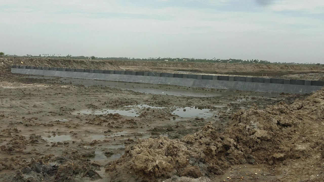 Earth work for bund construction in Cuddalore, Tamil Nadu