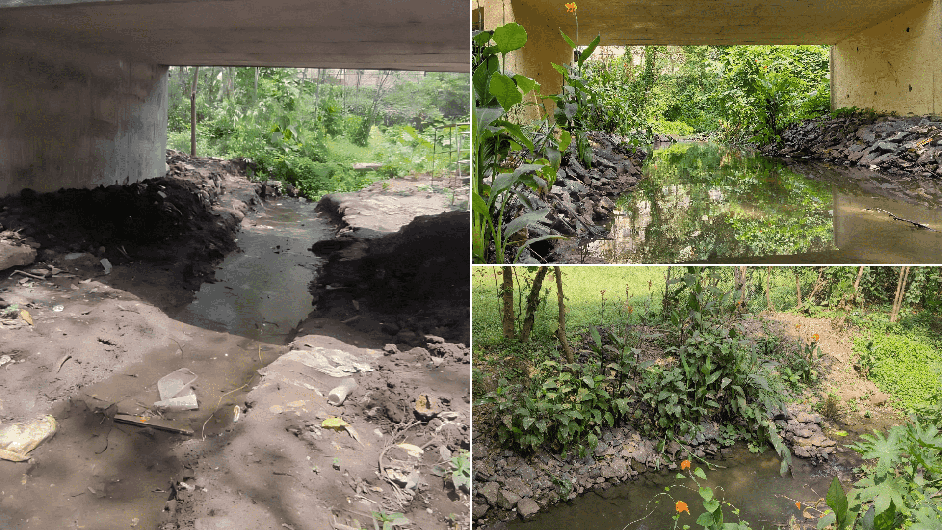 A stream rejuvenation pilot project executed by Lemnion Green Solutions at the IIT Bombay campus through TheCityFix Labs: Accelerating Nature-based Solutions initiative. Photo by Lemnion Green Solutions Pvt. Ltd. -