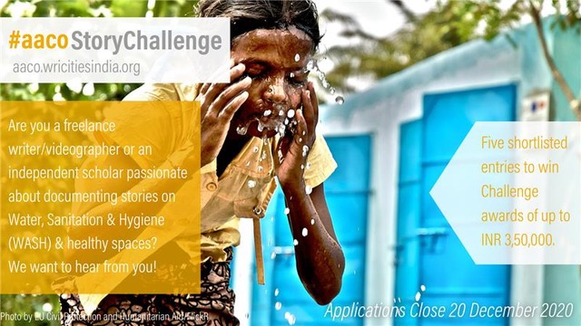 The Accelerating Access Coalition (aaco) Story Challenge invites proposals in line with the theme ‘Improving citywide inclusive and resilient access to WASH (Water, Sanitation and Hygiene) and healthy spaces in India’. The five shortlisted entries stand to win INR 50,000 each along with an opportunity to learn more about on-ground challenges in an interactive workshop.