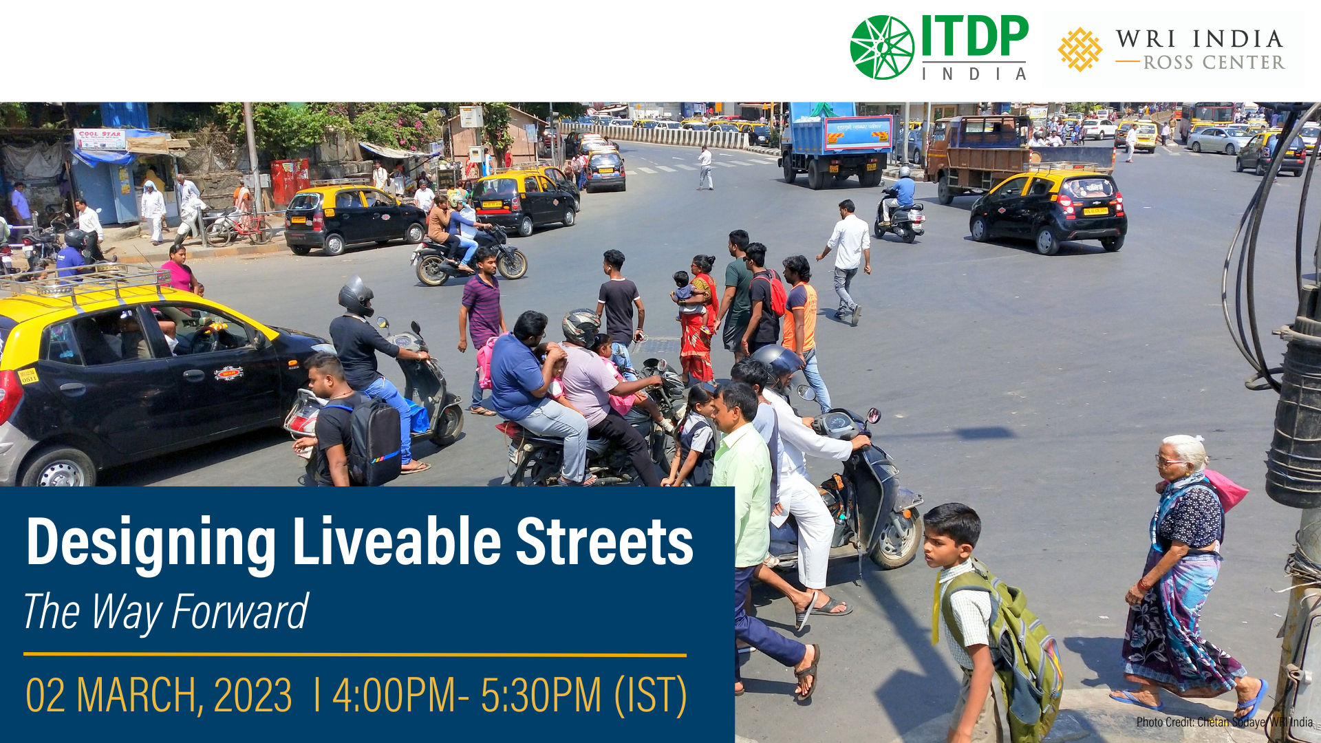 Join WRI India and ITDP India for a webinar on ‘Designing Livable Streets: The Way Ahead’ on Thursday, 02 March, 2023 from 4:00-5:30 pm (IST).