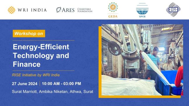 To advance energy efficiency in the textile industry, the Gujarat Energy Development Agency (GEDA), Gujarat Pollution Control Board (GPCB), South Gujarat Textile Processors Association (SGTPA), and WRI India have collaborated to host the workshop on ‘Energy-Efficient Technology and Finance’ in Surat this International MSME Day (27 June). This workshop will offer textile MSMEs the opportunity to access critical technologies, financial resources, and knowledge, all essential for their sustainable development. This workshop aims to bring together 80+ MSME associations, MSME owners, energy-efficient technology providers, financing agencies, and policymakers.
