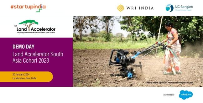 WRI India and AIC Sangam are co-organizing the Land Accelerator South Asia: Demo Day, that serves as a platform for entrepreneurs to pitch their businesses live to a panel of distinguished Investors from across India. For the 2023 cohort, the Demo Day is scheduled on 30 January 2024, during which the top 15 finalists will be pitching their businesses to impact investors. The entrepreneurs will also display their products/solutions/innovations during the Demo Day. This is a hybrid event which can be joined by attendees through an online registration.