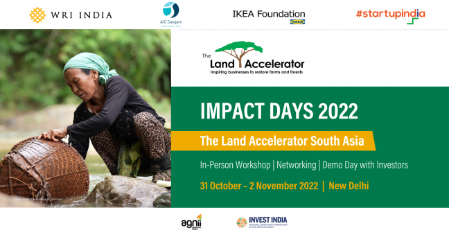 WRI India and Sangam Ventures are co-organizing Land Accelerator South Asia: Impact Days 2022, which will include in-person workshops, networking, alumni meet and a hybrid demo day. The Demo Day provides a platform to entrepreneurs with live pitching opportunities of their businesses to a panel of distinguished South-Asian Impact Investors.