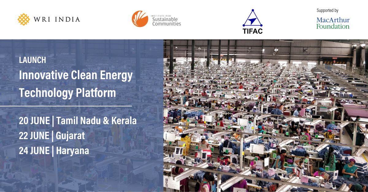 World Resources Institute India (WRI India) and Institute for Sustainable Communities (ISC) in partnership with the Technology Information Forecasting Assessment Council, the Government of India (TIFAC) are launching a technology showcase platform for MSMEs. This platform would function as an avenue for innovators/ startups/ technology providers and MSMEs to engage and collaborate. It will formalize and create an enabling ecosystem for promoting clean technology innovations for the SME sector. Instead of looking at national or state level challenges, the platform is focused on cluster level technology. The platform can also be used as a network to link other ongoing initiatives and bring innovators, entrepreneurs, and investors on a common platform to provide opportunities for collaboration and synergies.
