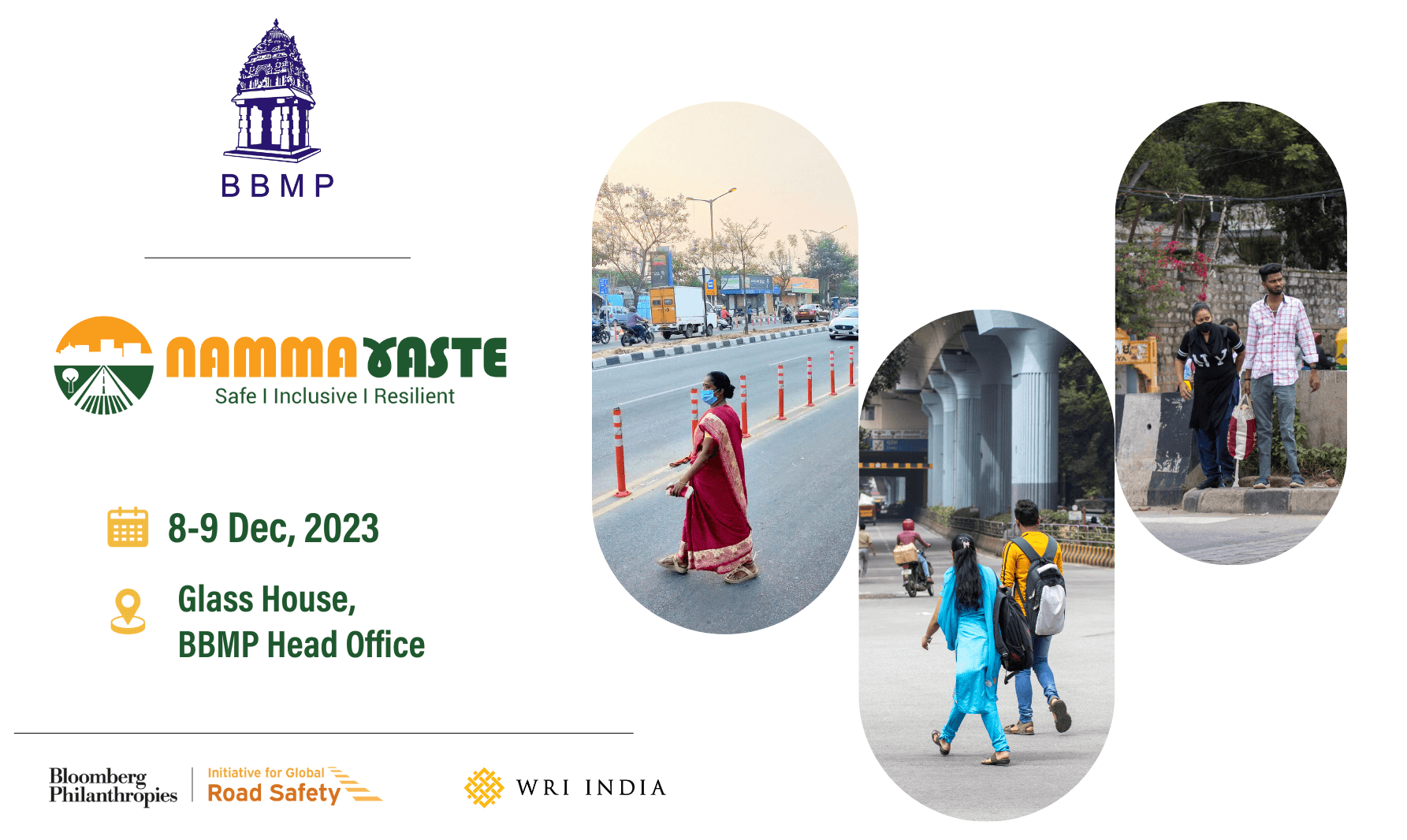 Join us for 'Namma Raste', a two-day exhibition and convening, that will bring together civil society groups, academic institutions, and corporate organizations, to facilitate knowledge-sharing and discussions aimed at building safer, inclusive, and resilient streets in Bengaluru. The event is being organized by the Bruhat Bengaluru Mahanagara Palike (BBMP), in partnership with WRI India, under the Bloomberg Philanthropies Initiative for Global Road Safety.