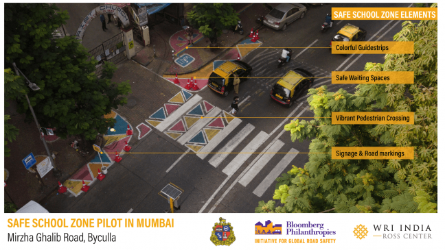 The ‘Safer Access to Schools’ project was undertaken under the Bloomberg Philanthropies Initiative for Global Road Safety (BIGRS). It aims to create child-friendly and walkable school zones in Mumbai. The trial includes testing design solutions that make the road walkable, barrier-free, safer, and more vibrant for all road users, especially children.