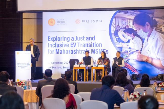 Pune, November 27, 2024: In its commitment to enabling a just and inclusive transition to electric vehicles (EVs), WRI India organized a convening on Wednesday to deliberate on the challenges and opportunities posed by Maharashtra's shift from internal combustion engine (ICE) vehicles to EVs. The event was attended by industry leaders, policymakers, and experts.