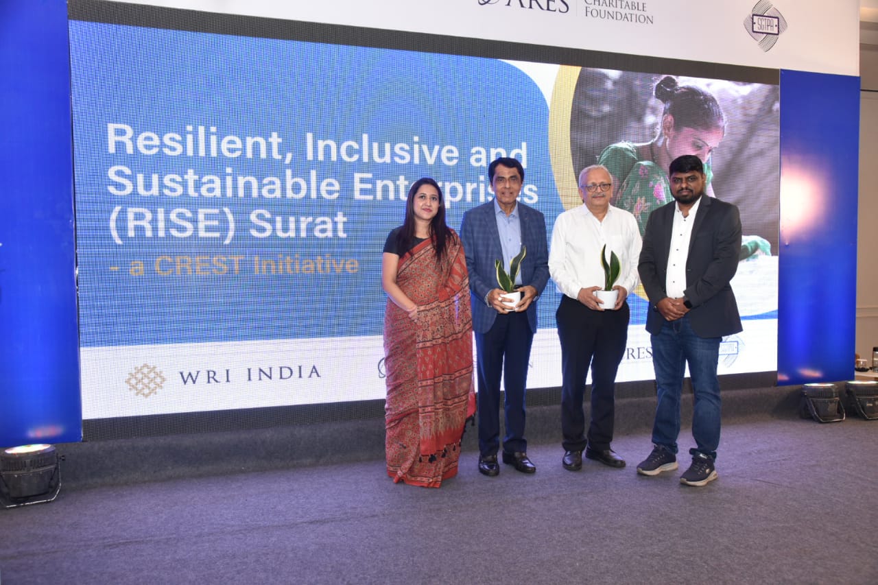 Surat, August 28, 2023: WRI India launched Resilient, Inclusive and Sustainable Enterprises (RISE) Surat, with the support of the Ares Charitable Foundation’s Climate Resilient Employees for a Sustainable Tomorrow (CREST) initiative. RISE Surat, a pioneering initiative, aspires to equip at least 50 MSMEs and 500 workers in Surat’s textile sector with the necessary tools, knowledge, and skills needed for a low-carbon transition in India and help them develop easy and practical solutions.