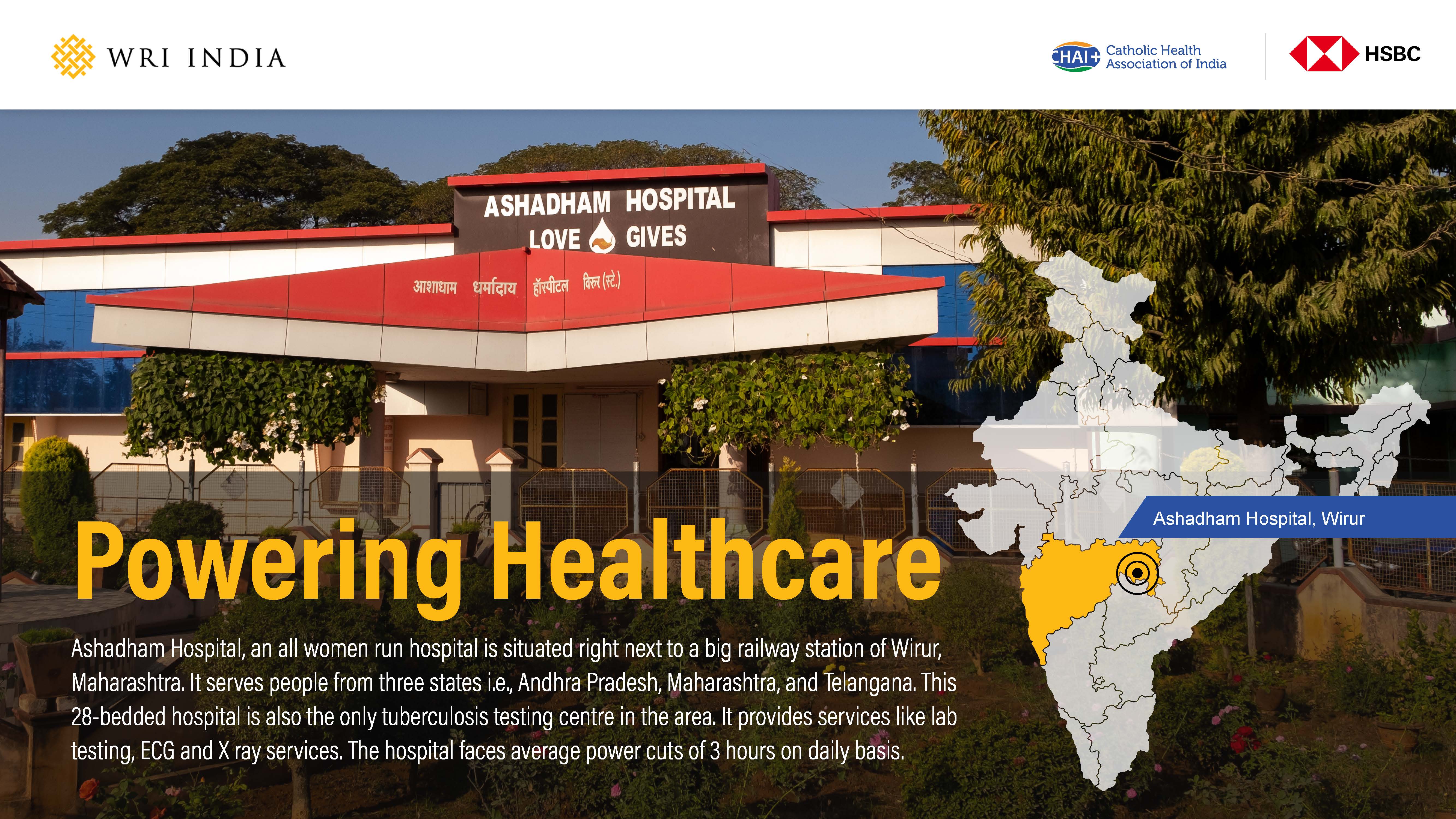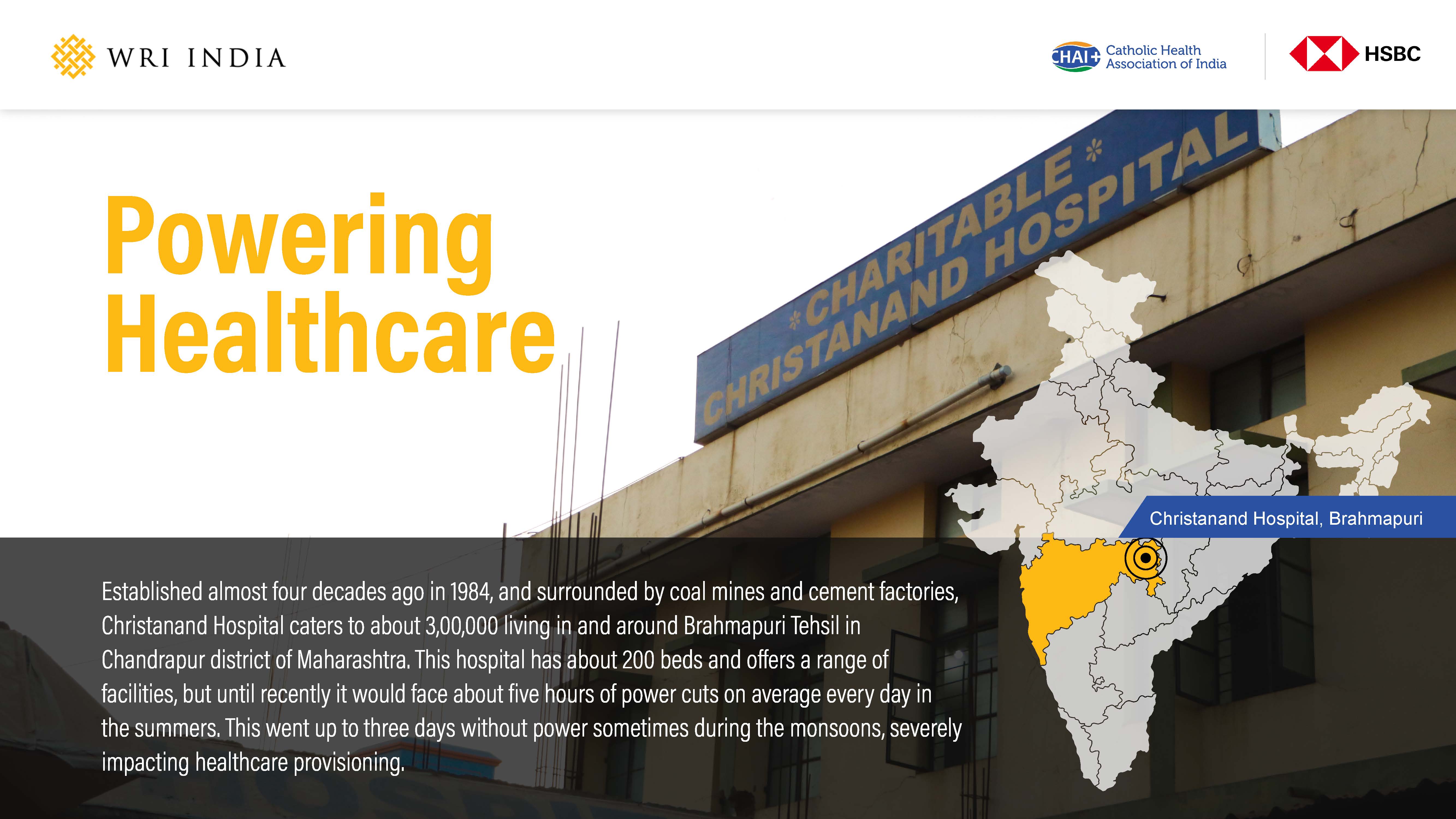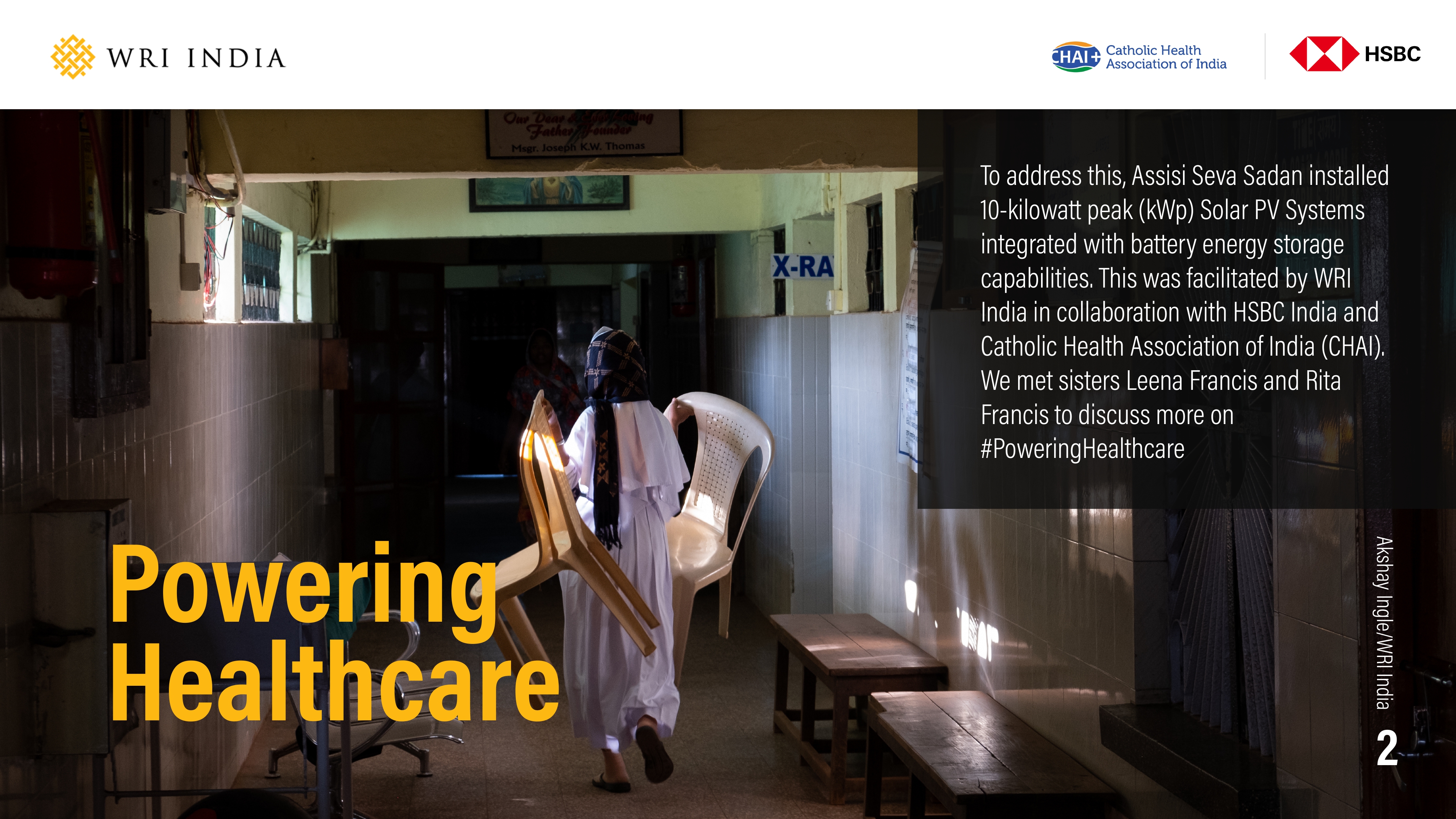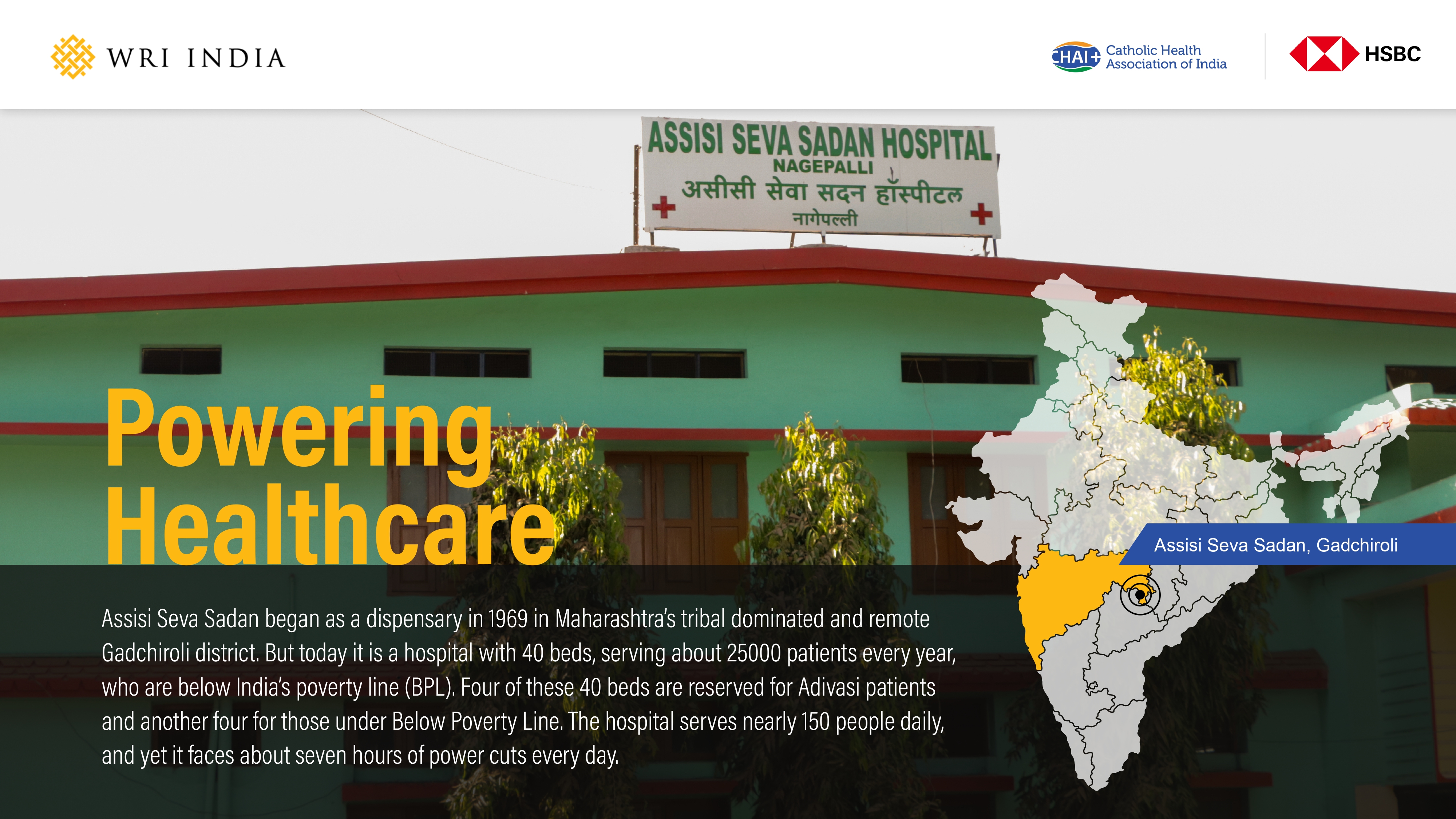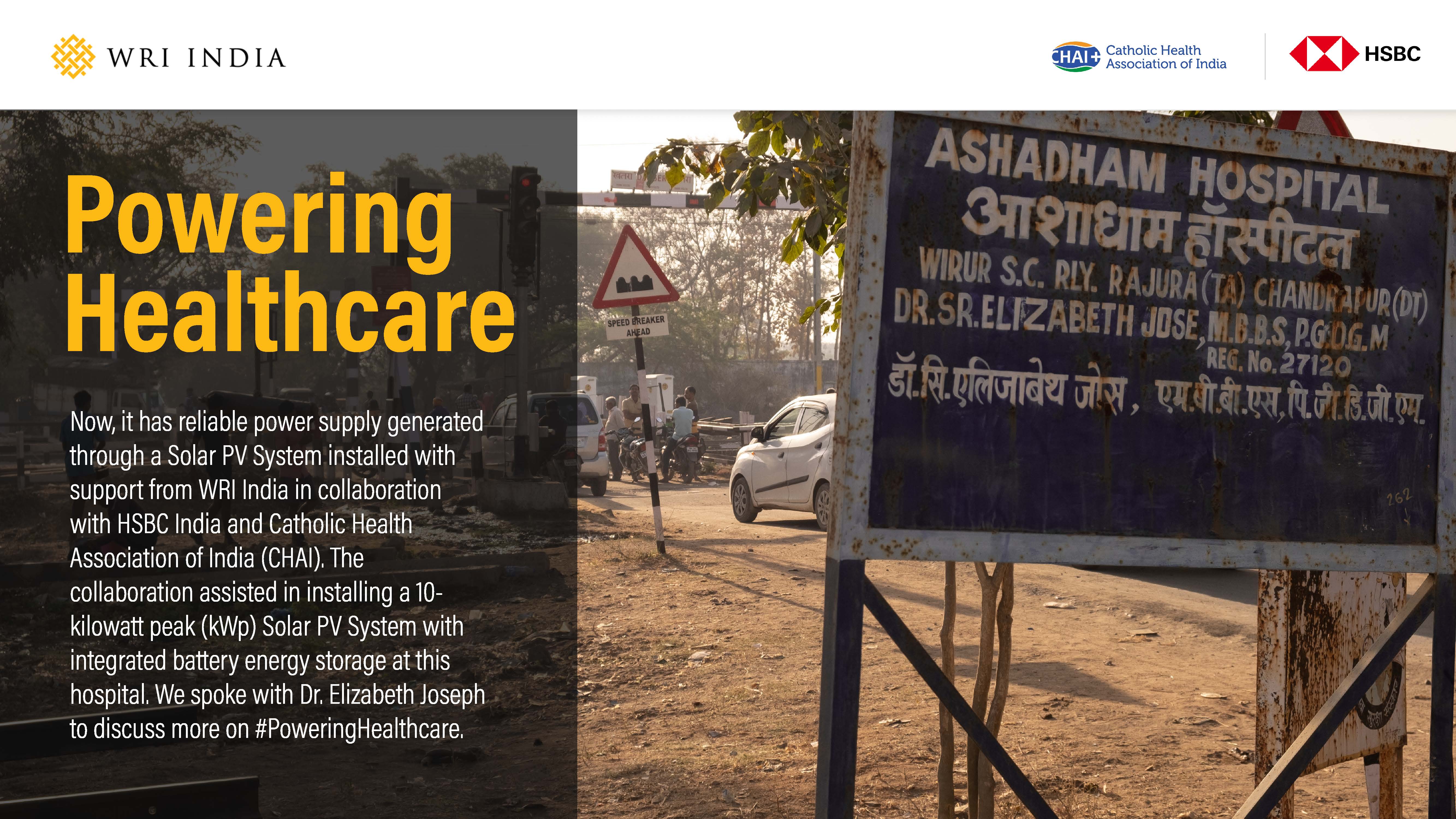 By partnering with HSBC India and Catholic Health Association of India (CHAI), WRI India has supported the installation of 95 kWp of solar PV systems with battery storage across 12 health facilities. These solarized health facilities have a total bed strength of 578 and serve around 120,000 patients every year. Moreover, 138 representatives of health Institutions from diverse backgrounds were provided technical knowledge on the utilization, operation, and maintenance of the decentralized solar energy systems.