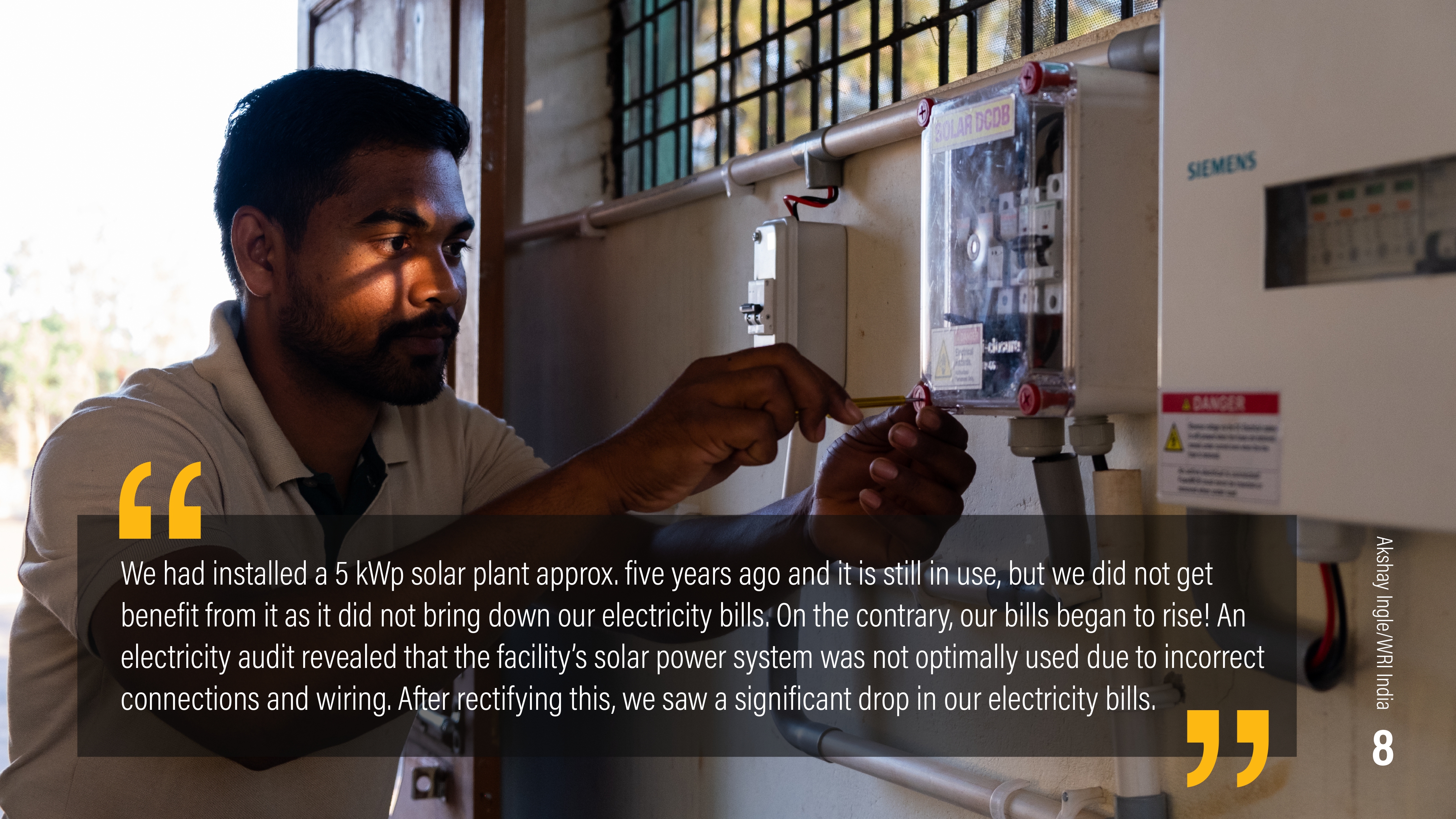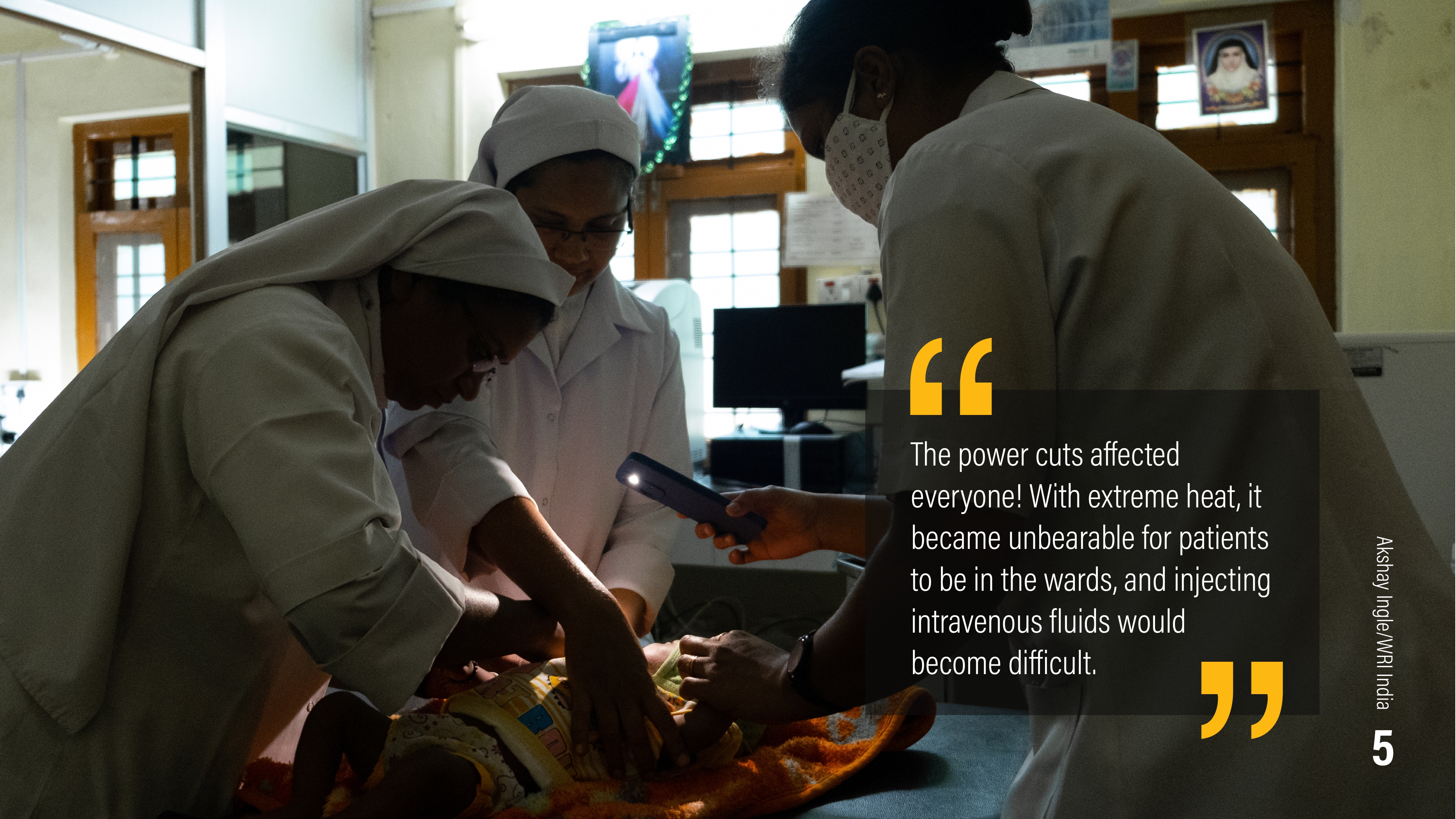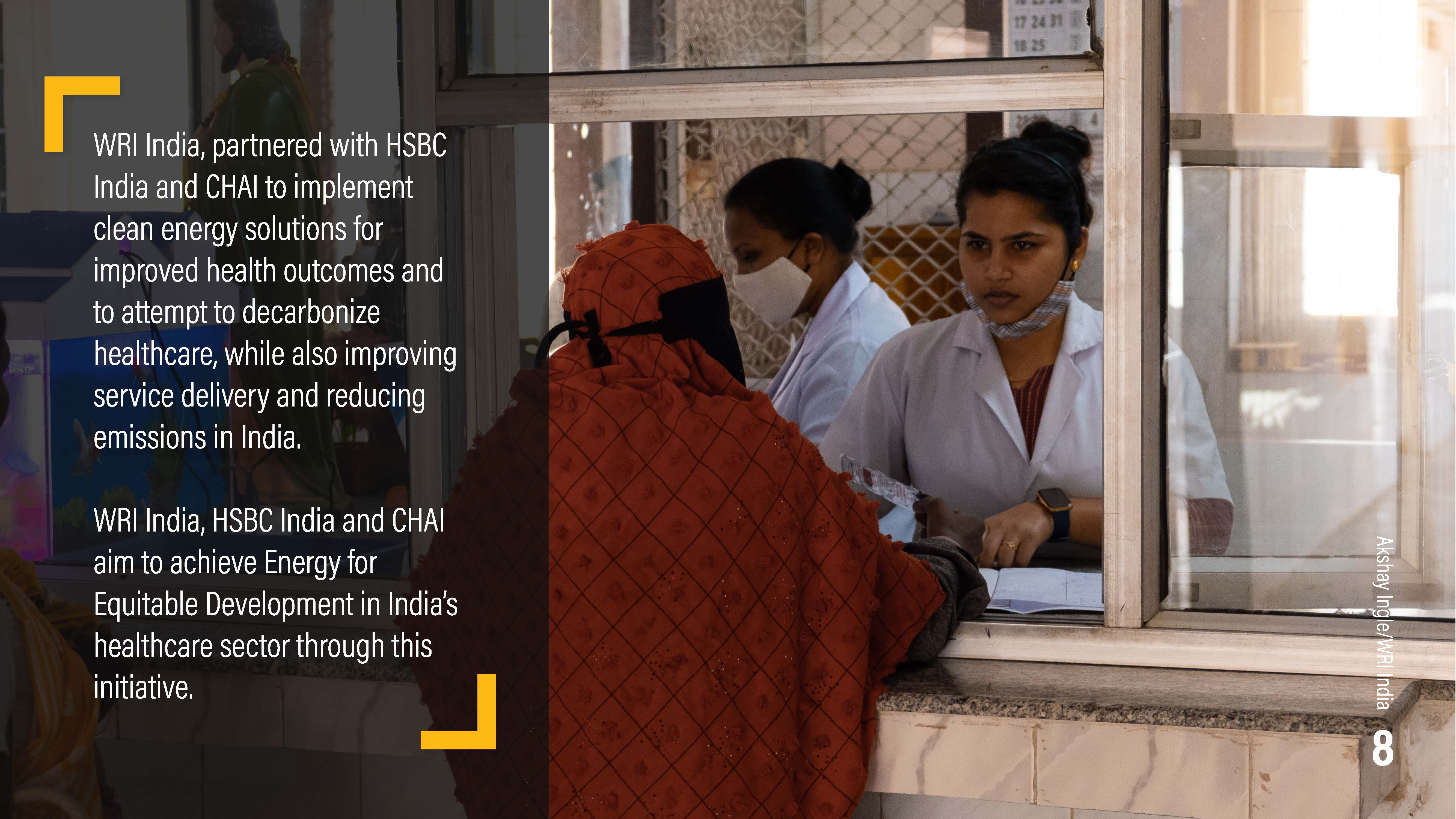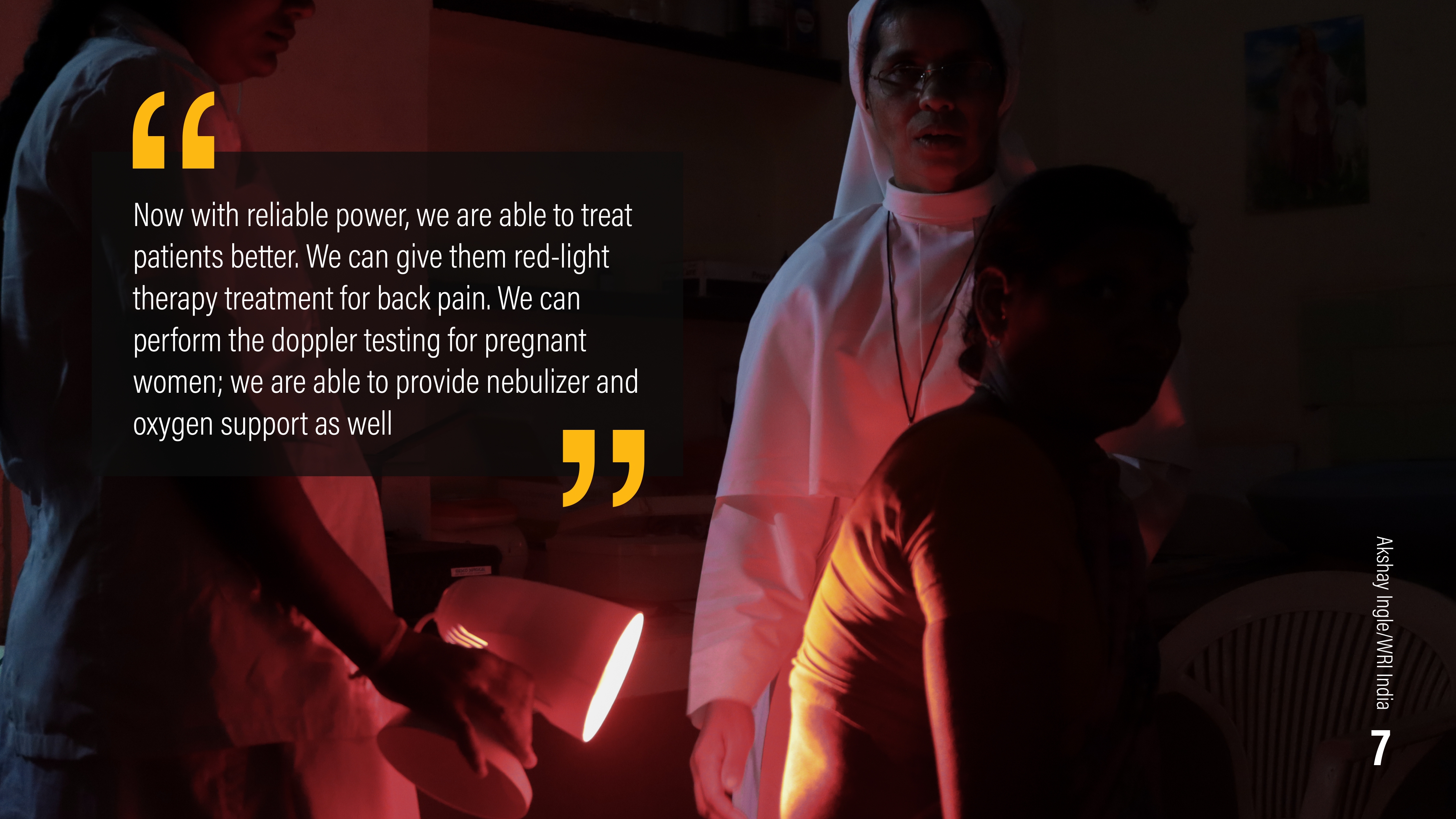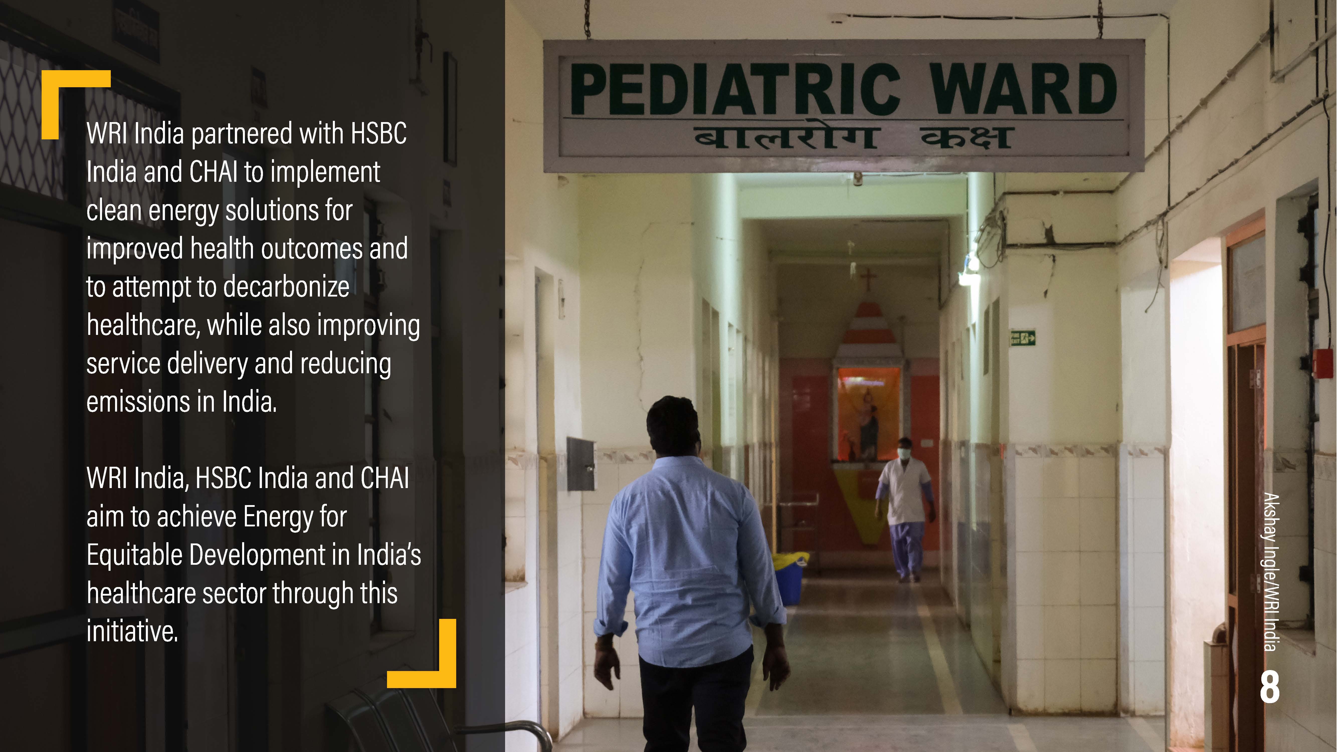 By partnering with HSBC India and Catholic Health Association of India (CHAI), WRI India has supported the installation of 95 kWp of solar PV systems with battery storage across 12 health facilities. These solarized health facilities have a total bed strength of 578 and serve around 120,000 patients every year. Moreover, 138 representatives of health Institutions from diverse backgrounds were provided technical knowledge on the utilization, operation, and maintenance of the decentralized solar energy systems.