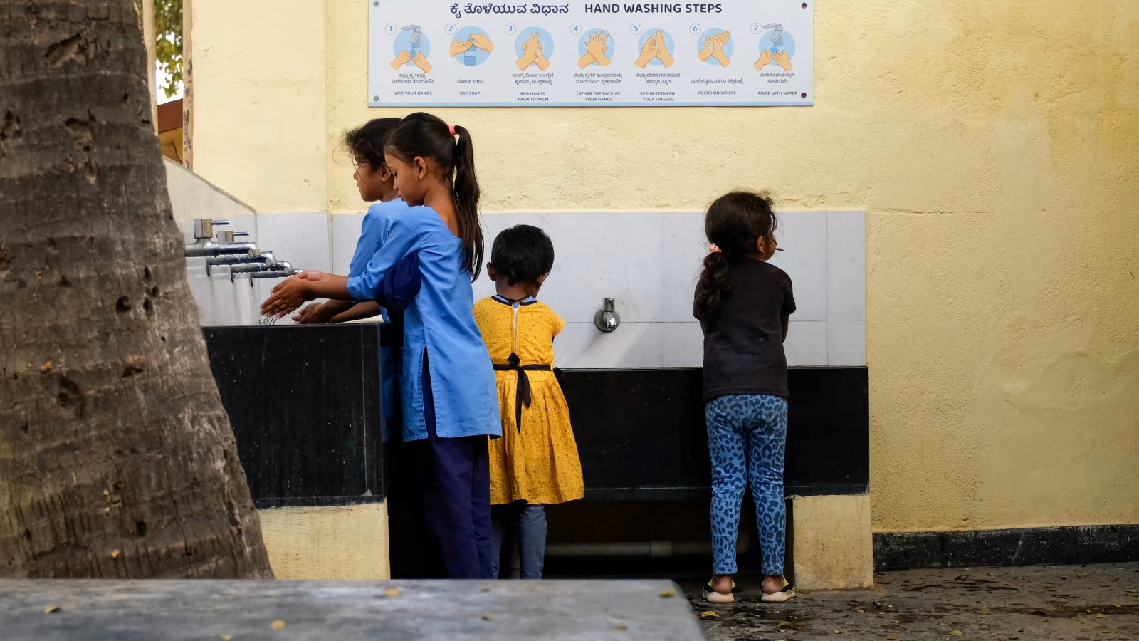 Low-heighted hand wash facilities for young children at Ulsoor Anganwadi in Bengaluru. Photo credit: WRI India -