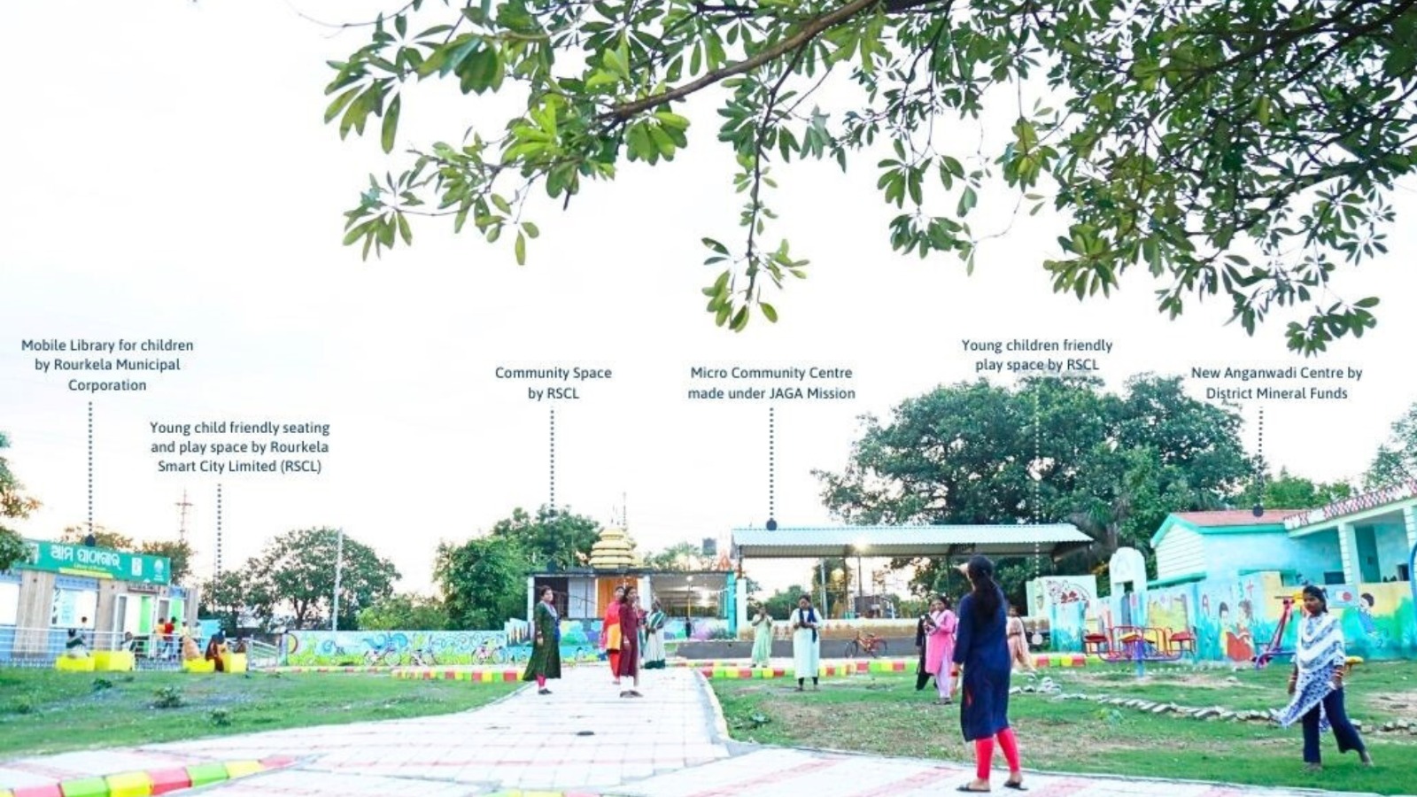 While authorities work to improve public health centers and Anganwadis, such spaces function better when clustered with other community spaces. One such example lies in the city of Rourkela, that integrates an Anganwadi center, a mobile library, an open play space, an open gym and a micro activity center. This multi-functional ECD cluster caters to nearby vulnerable settlements. It today serves as a community anchor, enabling all age groups to use the public space simultaneously – improving residents’ social wellbeing and enhancing their overall sense of safety.